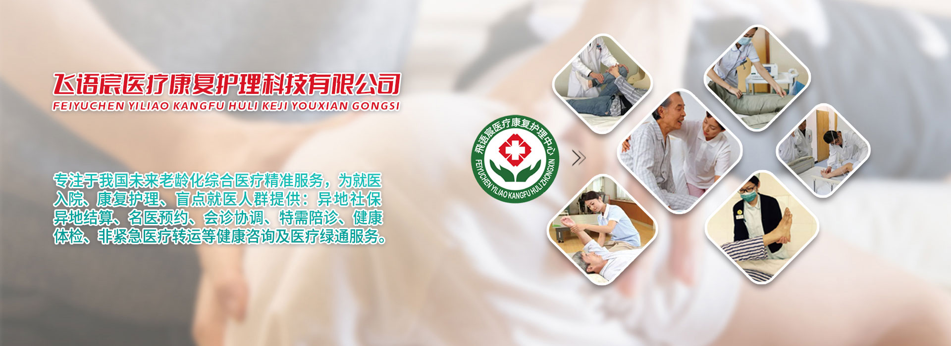 深圳市飛語宸醫療康復護理科技有限公司,是一家專注于健康產業領域中具有卓越影響力的創新型服務企業。公司致力于為社會提供全方位、高品質的醫療、康復、護理及人工智能綠通就醫服務。憑借前沿最先進的醫療技術信息和專業的團隊,注重服務深耕細作,為解決健康綠通服務壁壘,相繼融通全國各地數百家實力派醫療機構、養老機構、護理機構、陪診機構、陪護機構、助浴機構的社會資源力量,使醫療綠通精準服務于社會。